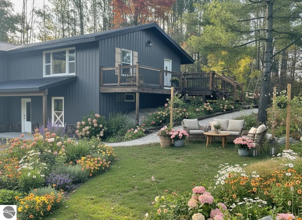 Ready for your Summer enjoyment! This contemporary and spacious two story, raised ranch features 4 bedrooms, 3 bathrooms, high speed internet and is situated on 3 acres just 4 miles south of East Jordan and the South Arm of Lake Charlevoix! This may just be the property you have been waiting for. The home is virtually a new build. The original footprint was used, however, it features completely remodeled spaces: 1. New metal roof and siding provide a contemporary look and ease of maintenance; 2. New luxury vinyl plank flooring enhances the living room, stairways and hallways, creating a modern and cohesive look; 3. Three bedrooms and two beautifully tiled baths are located on the main, walk-up level; and 4. The new kitchen includes granite countertops and GE Stainless Steel Appliances with Slate Matte finish that hides fingerprints for easy care. Ample storage is thoughtfully integrated throughout the home with numerous closets and storage areas. The finished basement adds approximately 1,400 square feet of versatile living space, ideal for entertaining or family gatherings. It includes a spacious family room, a fourth (non-conforming) primary bedroom, a tiled bathroom, storage room and new mechanicals. Outdoor living is enhanced by a back deck perfect for dining al fresco. A completely restored, two story outbuilding provides additional storage and functionality. The property has fruit trees, a generous yard, established plantings, and a creek. Located near Snowmobile and Hiking Trails, Webster Bridge and Rogers Bridge End (Jordan River Accesses for kayaking and fishing), Raven Hill Discovery Center, Cosner Preserve, East Jordan, Boyne City, and more. This property combines comfort, space, and outdoors enjoyment in a peaceful Northern Michigan country setting. All information and measurements are deemed reliable, however; should all be verified by the buyer and/or buyer agent. Some photos have AI generated photos.